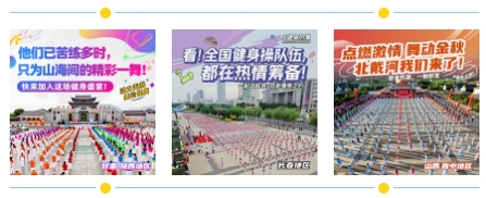 9月9日-28日,數(shù)萬名健身操愛好者將齊聚北戴河、山海關(guān)這些國家級風(fēng)景名勝區(qū),在藍(lán)天大海和群山海岸間一起跳健身操!用動感節(jié)奏和優(yōu)美舞姿,秀出健康與活力~