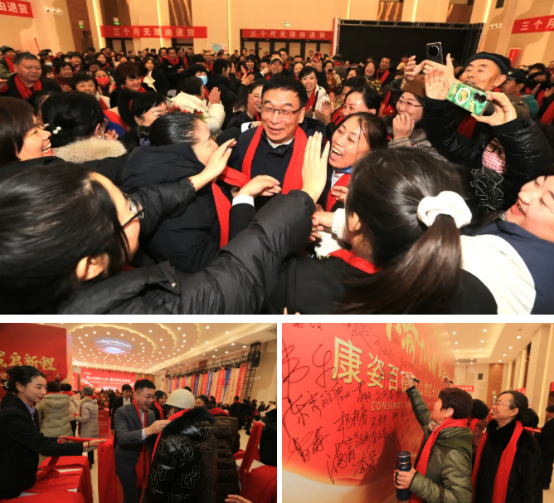 董事長李銀祥親自接過錦旗與感謝信,并與客戶合影留念。溫馨的互動(dòng)場(chǎng)景,讓現(xiàn)場(chǎng)每一位觀眾都感受到了康姿百德與客戶之間深厚的感情。